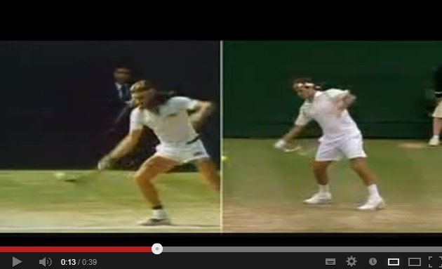 上のYoutubeの画像(ボルグとフェデラーのフォアハンドストロークの比較)は、ほぼ同じ角度から同じタイミングで二人のプレーヤーのフォアハンドを比較しており、貴重な映像だと思います。この映像を見ると、二人のフォワードスイングの違いがよくわかります。